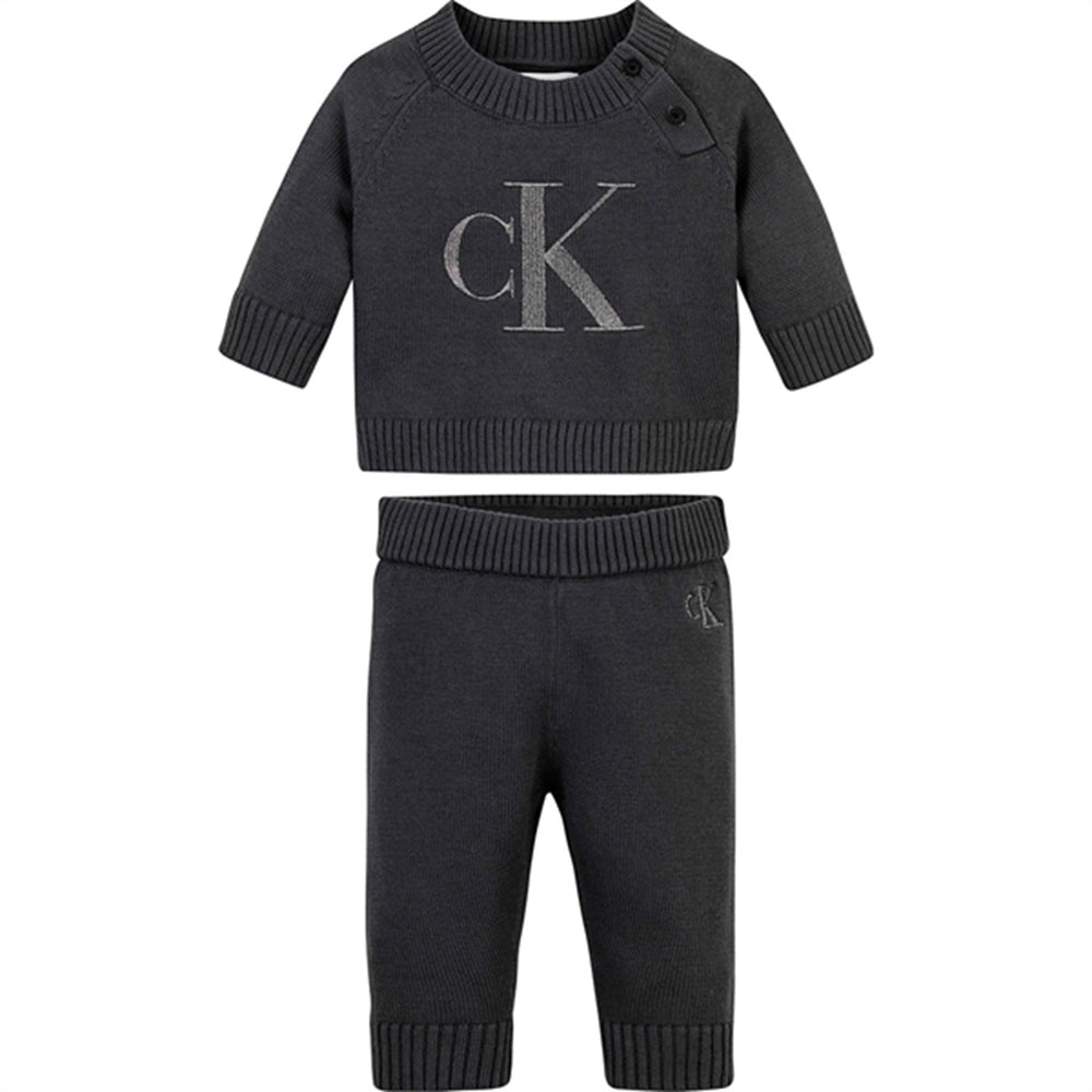Calvin Klein Metallic Monogram Knit Sweater Sæt Dark Grey
