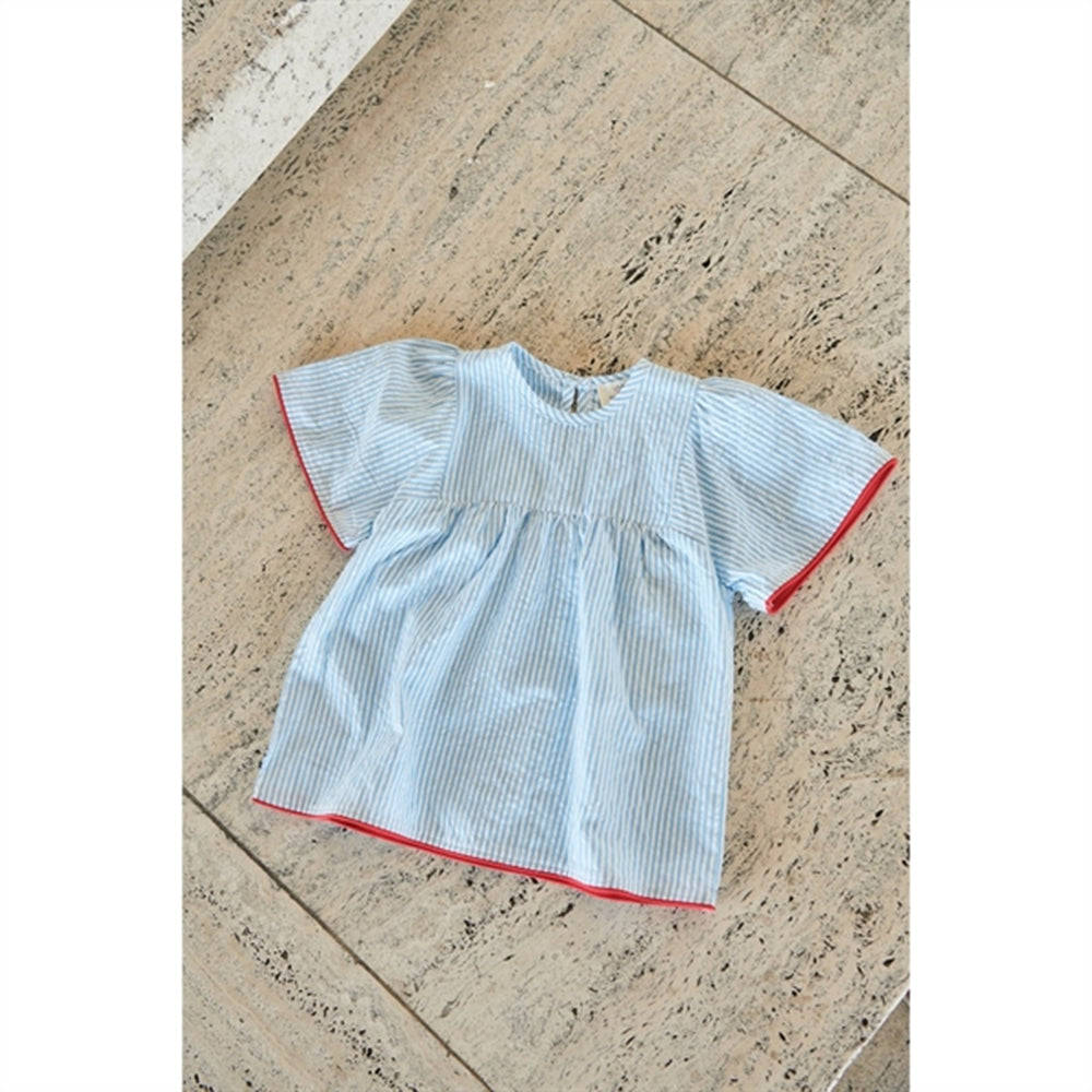 Copenhagen Colors Sky Blue W Cream Stripe Seersucker Blouse