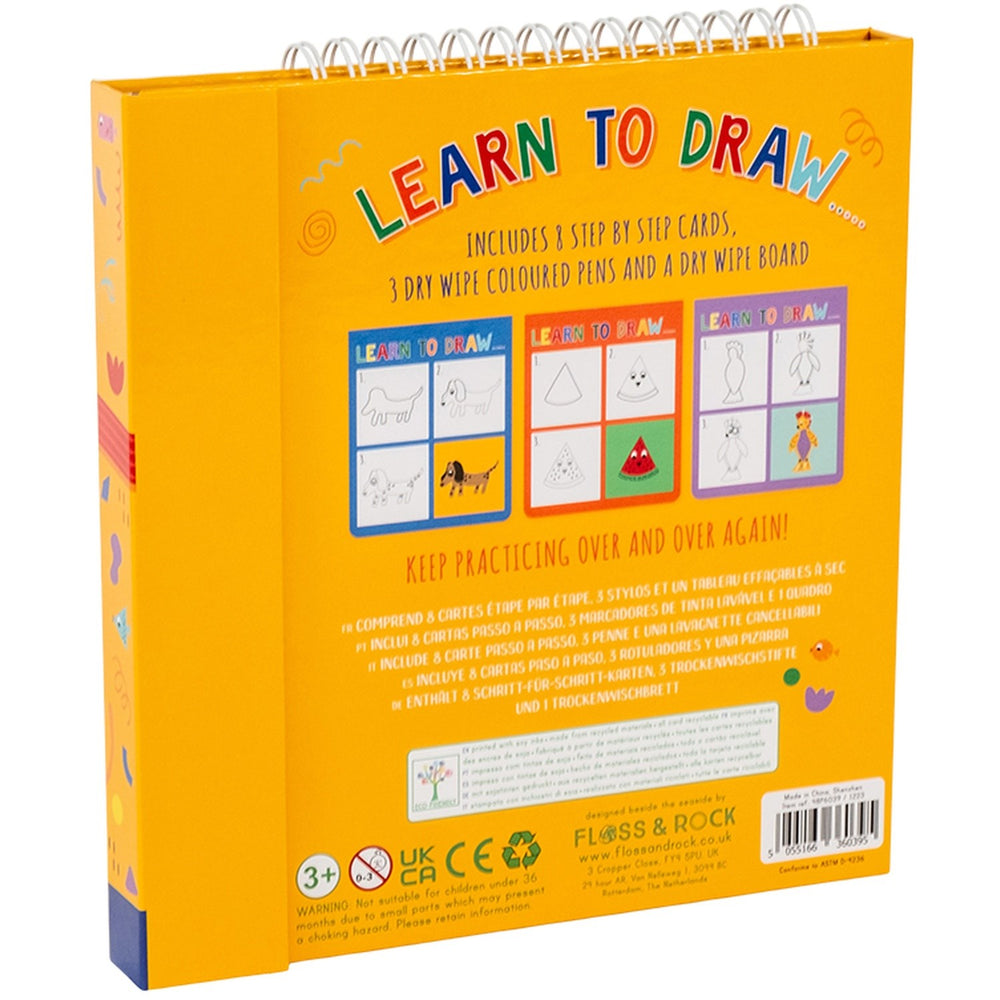 Become a budding artist with our Pets themed Learn to Draw activity. Open the book to reveal 8 thick glossy pages, 3 colour dry wipe pens with erasers and a draw and colour section to copy the image. Each page has a 3 step guide as to how to draw your masterpiece! The book folds almost flat with a magnetic closure and is perfect for travel and taking out and about. Reusable over and over again.