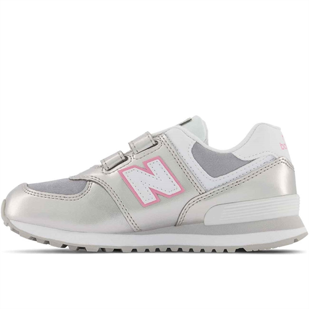 New Balance 574 Silver Metallic/Bubblegum Sneakers