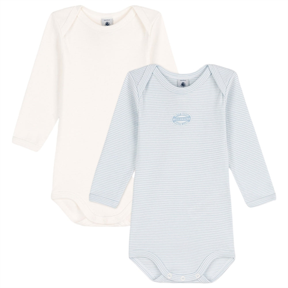 Petit Bateau Bodies ML 2 Pack White/Blue Stripe