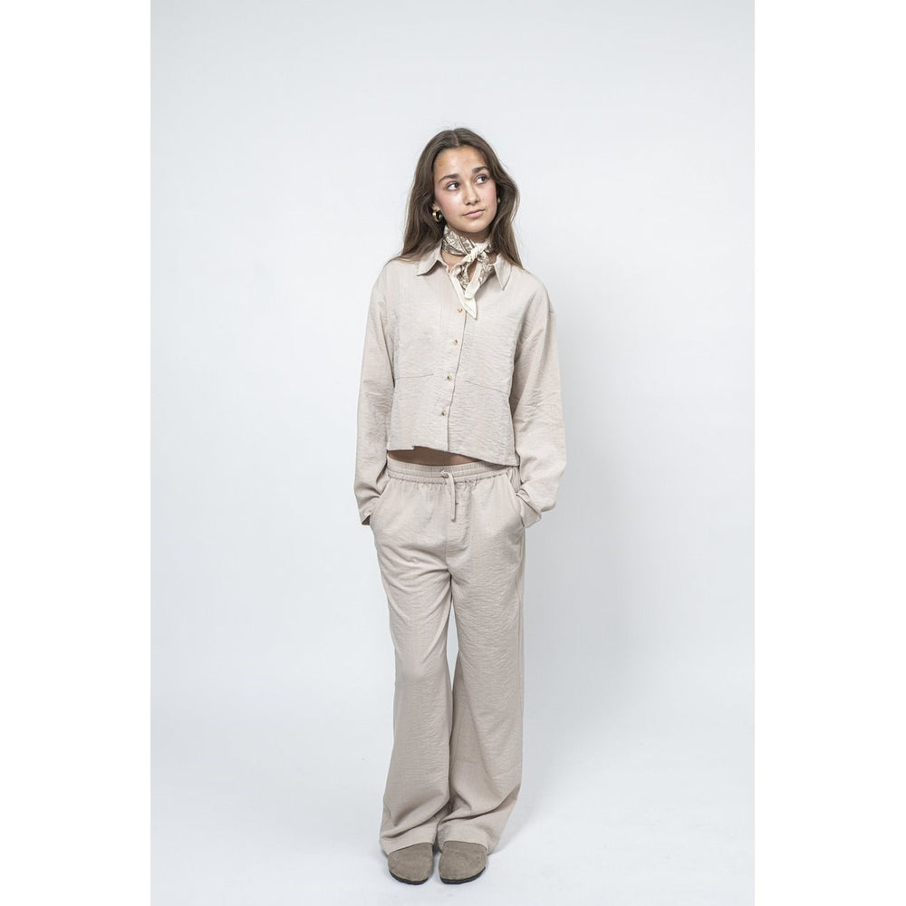 Cropped shirt in sand from Sofie Schnoor! The perfect blend of style and comfort. Two large pockets, classic collar and button closure add a smart touch. Made from 49% viscose, 34% polyester, 17% polyamide for a soft and comfortable feel. Remember to follow the washing and instruction manual so your little one can keep the style intact. Perfect for both everyday and festive occasions!