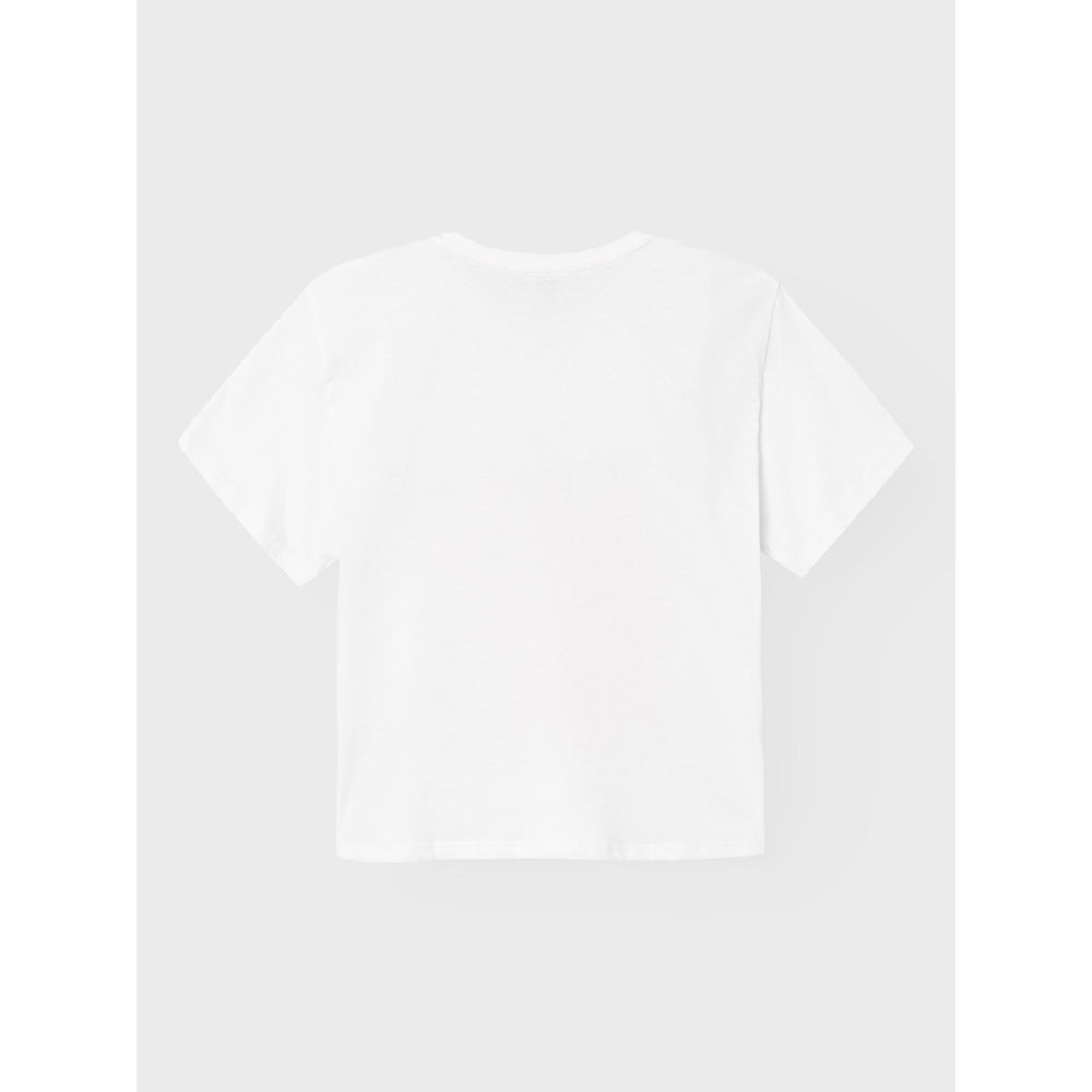 Dress your little one in the Name It Bright White Pink Nectar Javase Loose Short T-Shirt for a trendy and comfy look this summer! Made from a lightweight and stretchy jersey fabric, this T-shirt features a shiny foil print for a touch of sparkle and a rubber print for a soft feel. The loose fit allows for easy movement, making it perfect for all-day play. With an O-neck and short sleeves, this tee is ideal for sunny days and light nights. Add this stylish piece to your child's wardrobe for a fun and fashionable outfit option.