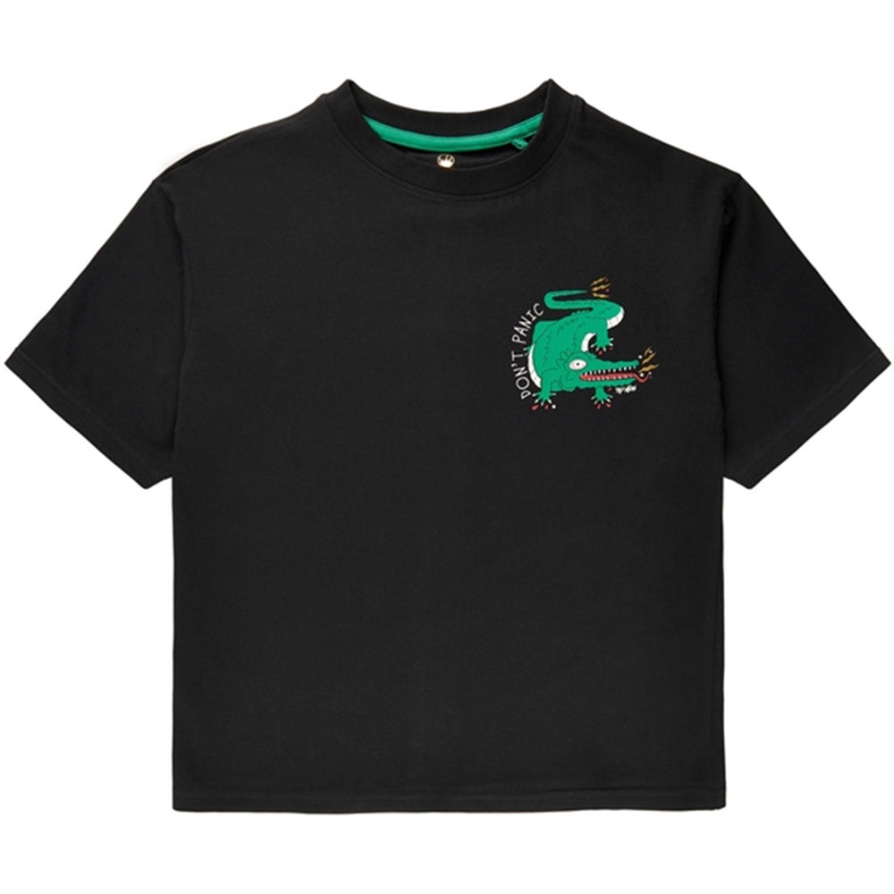 Playful and casual oversized THE NEW t-shirt for boys to showcase a cool style and personality. This classic black t-shirt features a humourous and colourful front- and back print of a cartoon crocodile. Crafted from organic cotton and elastane, it offers a soft feel and a comfortable fit, which your boy will love to wear all day. - Oversize fit provides a casual look and allows for longer-lasting wear.- Short sleeves and round neckline.- The front features a small chest print of the crocodile.- The back features a larger print of the crocodile.- 95% organic cotton makes it soft, comfortable and breathable.- 5% elastane ensures a flexible fit and freedom of movement.- Perfect for casual everyday wear.