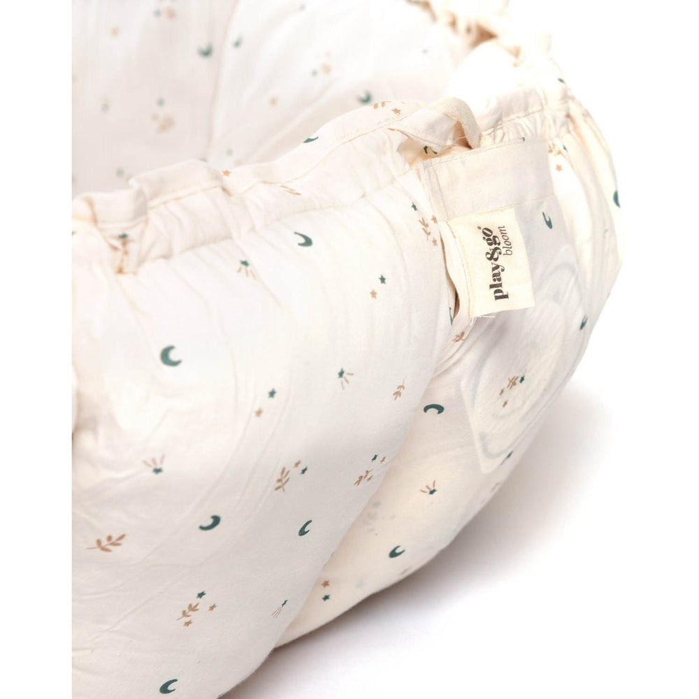 Play, lounge, and grow with the Play&Go Organic Bloom Moon 2-in-1 Playmat! Winner of the 2022 Junior Design Award for Best Baby Activity or Playmat, this versatile playmat transforms from a safe lounging crib for your baby to a spacious play area. Perfect for tummy time, play, and exploration, the Play&Go Bloom is made from 100% organic cotton and can also serve as storage for your child's toys. Let your little one bloom and play with this innovative 2-in-1 play mat!