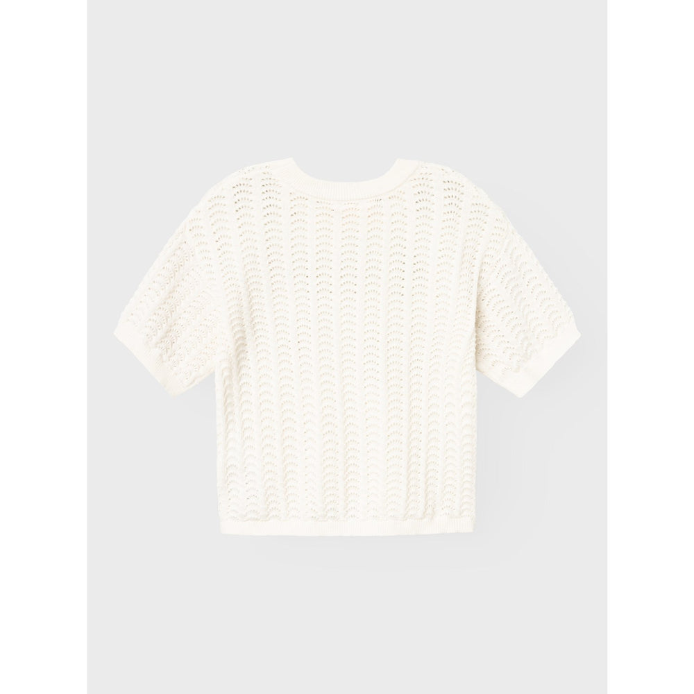 Dress your little one in style with the Lil'Atelier Coconut Milk Johanna Loose Knit Blouse! Made from soft organic cotton, this knitted top features a unique texture and 3D effect for a trendy look. With an O-Neck and short sleeves, it's perfect for everyday wear. Organic cotton farming protects natural resources and biodiversity, making it a sustainable choice for your child's wardrobe. Create a comfortable and fashionable outfit for your child with this high-quality piece.