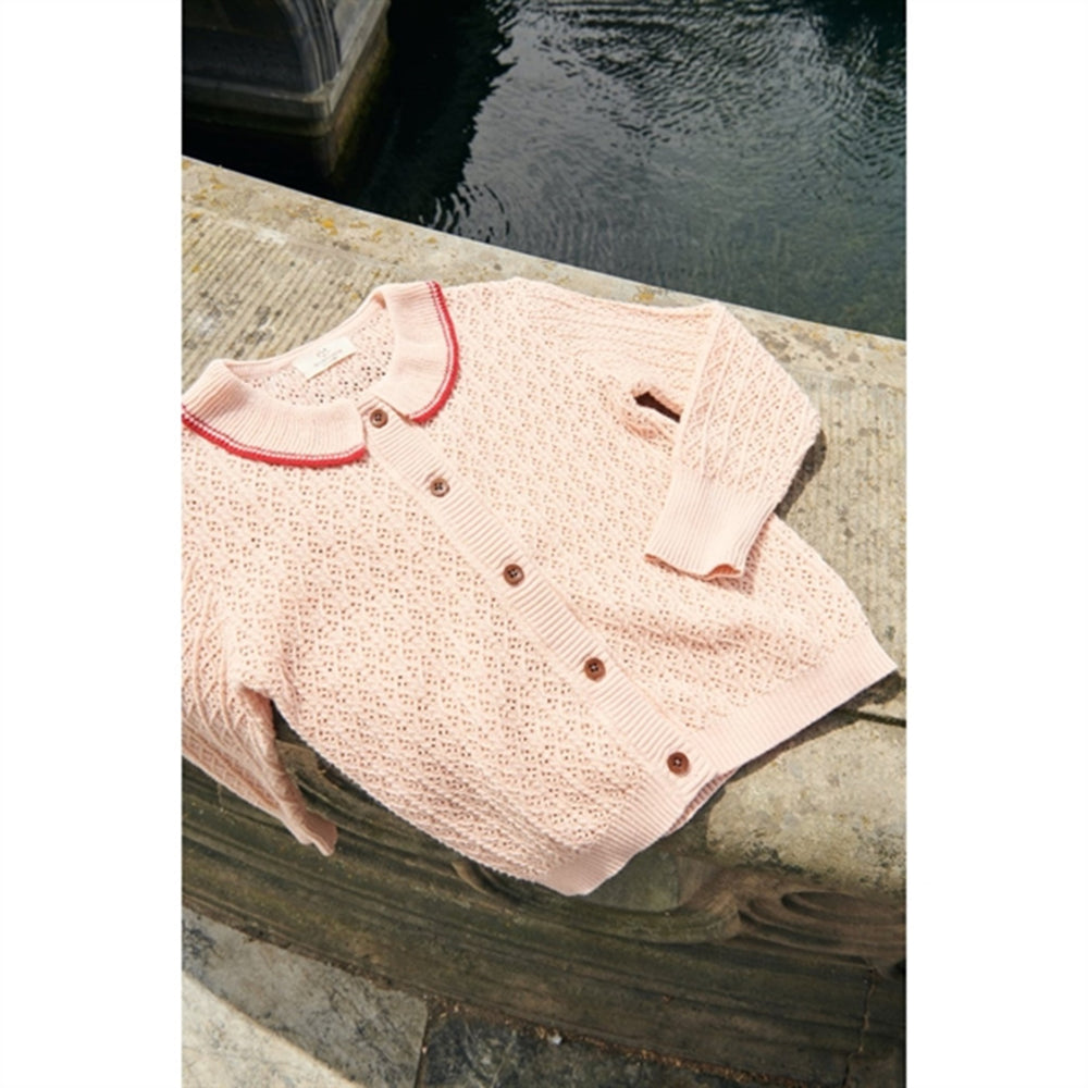 Copenhagen Colors Dusty Rose/Red Comb. Pointelle Cable Knit Cardigan w. Collar