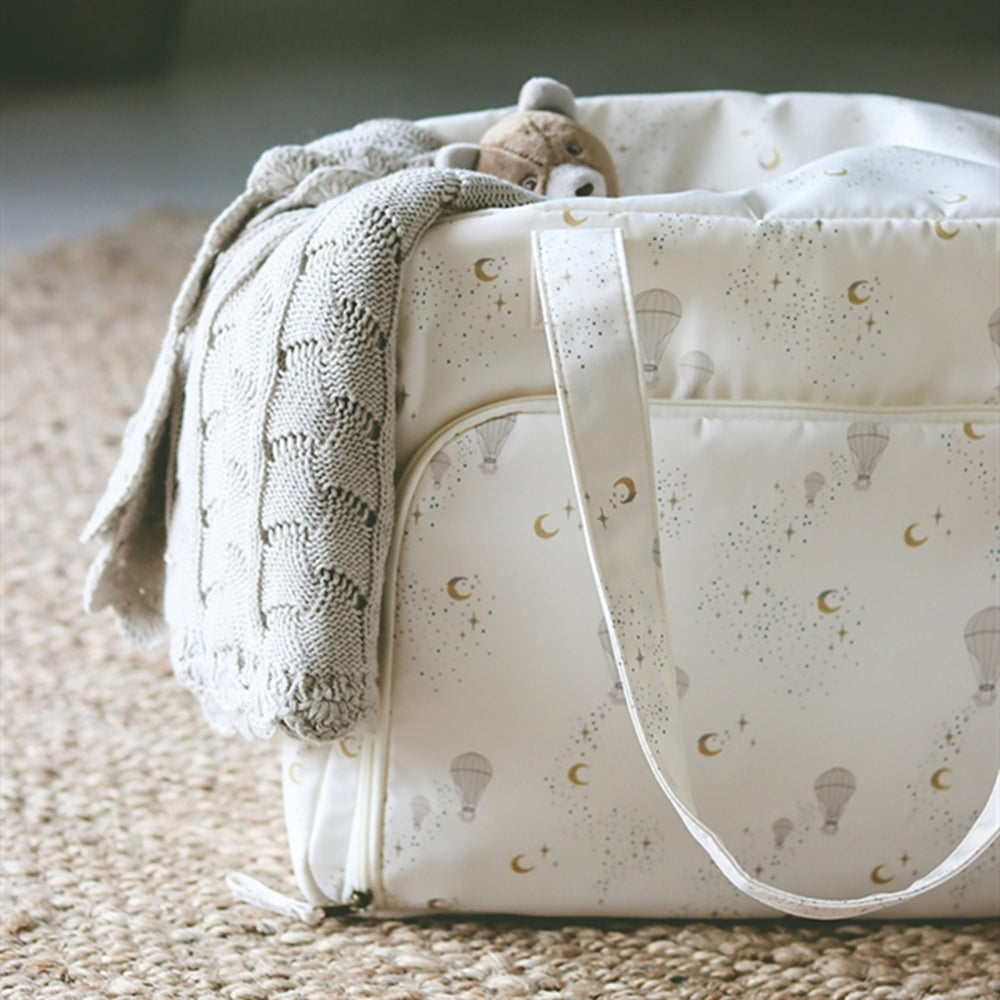 A nice nursing bag with plenty of room. We have upgraded the nursing bag with a lot of smart functions that every parent will love. Made from 100% recycled polyester that is easy to wipe off and without PFA coating.