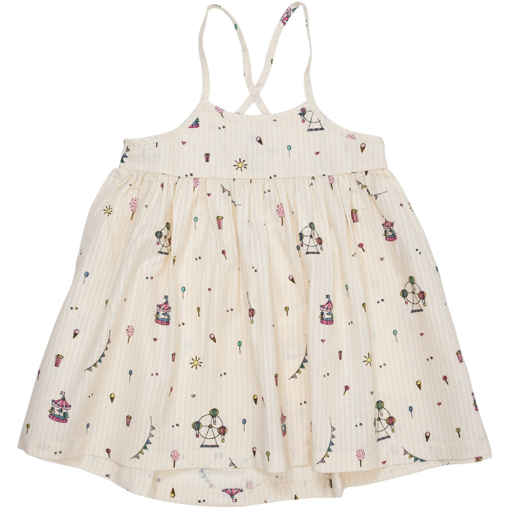 Introducing the delightful Copenhagen Colors Cream Tivoli Print Strap Dress, specially designed for your little one's wardrobe! Crafted from premium materials, this charming dress combines both comfort and style. Showcasing a unique and lively Tivoli print, the dress stands out with its vibrant mix of colors and patterns that are sure to capture the imagination of children.