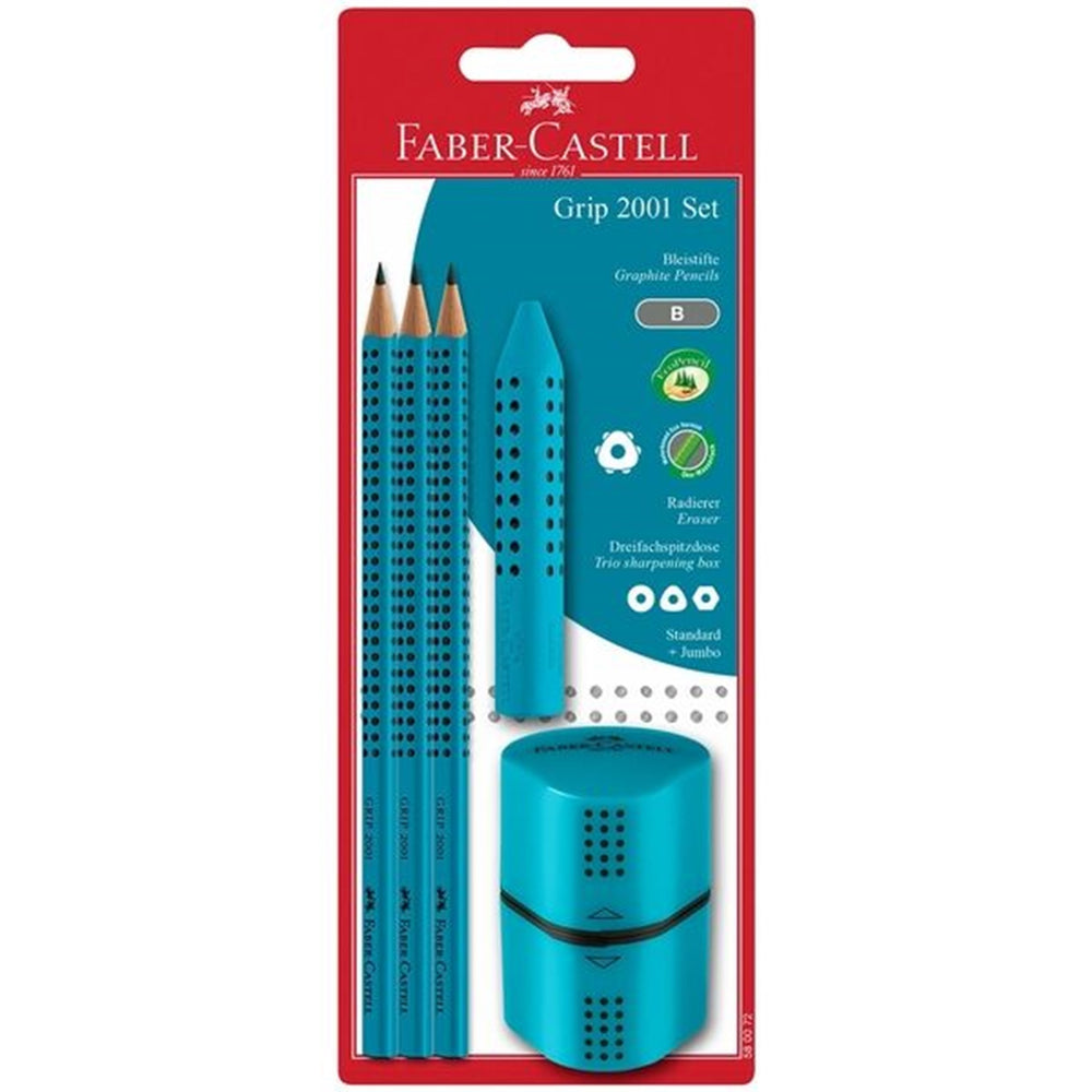 Faber Castell Grip 2001 Pencils+Twin Sharpener Turquoise