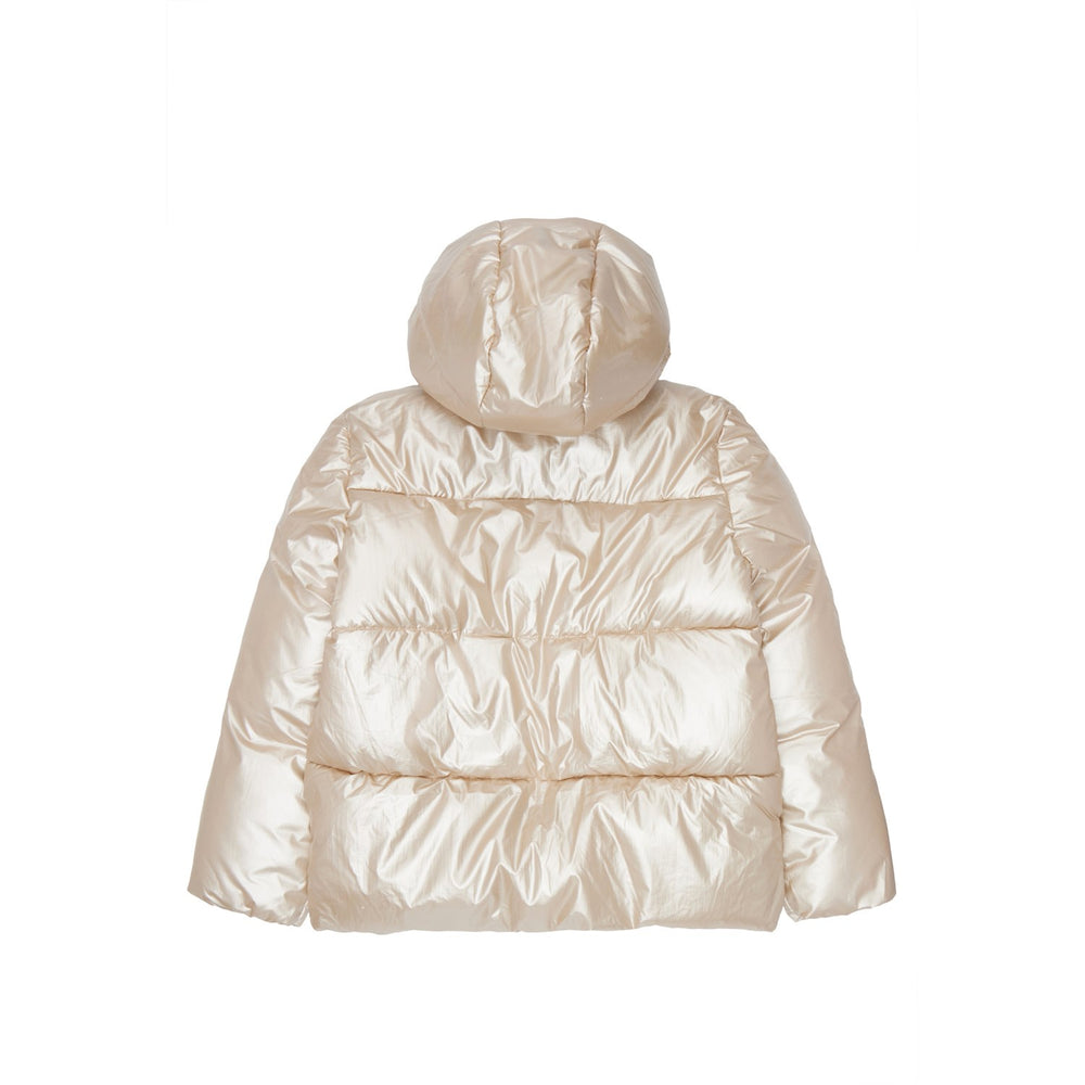 Brighten up your child's wardrobe with the New Gold Lona Jacket, a solid-colored puffer jacket that combines warmth with whimsical flair. This jacket features a foil-coated, shiny exterior that not only gives it a cool metallic sheen but also makes your little one stand out in any weather. Made from 100% nylon with a 100% polyester lining and fill, it ensures your child stays snug and comfortable throughout the colder months.