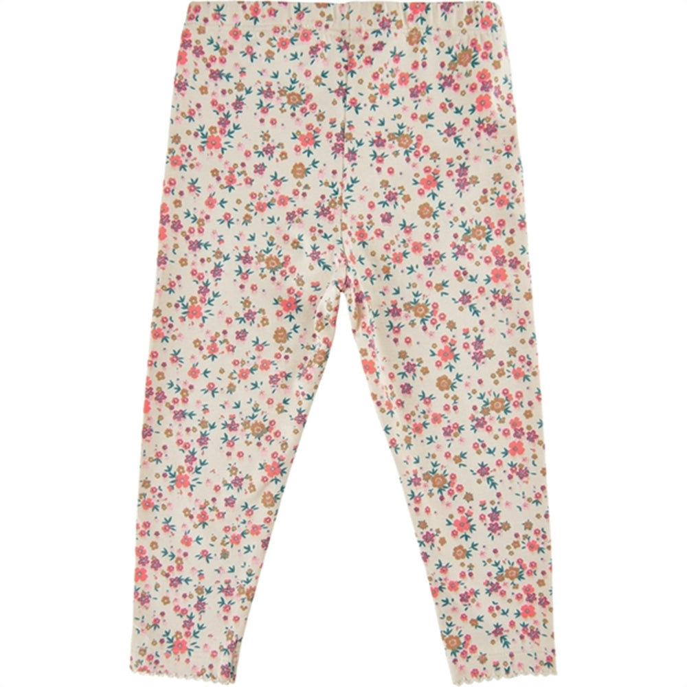 Beautiful and eye-catching baby leggings with an illustrated pattern of delicate and colourful flowers. These adorable leggings from THE NEW siblings are made of organic cotton to avoid harmful chemicals and make them soft, lightweight, and breathable. We have also added 5% stretch to ensure free movement and comfort for your child to play and explore. Whether your child is crawling, playing, or dancing, these leggings are perfect for new adventures. Pair them with the matching bodystocking for a sweet, coordinated floral set.- Regular fit with an elastic waistband.- Floral all-over print (AOP) design.- Lace trim at the ankles.- Jersey fabric made of 95% organic cotton and 5% elastane.- GOTS certified, which guarantees that they are made with certified organic materials, under strict requirements for social and environmental practices, and without harmful chemicals.