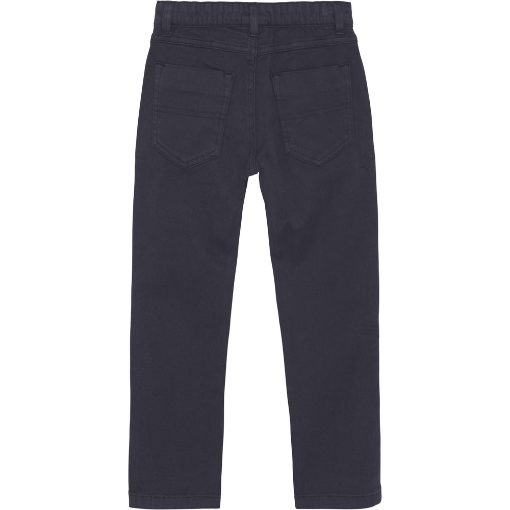 Experience the comfort and style of the Minymo Parisian Night Pants in twill - perfect for your child's everyday and adventurous wardrobe. These modern trousers are made from a durable twill fabric that ensures that your child can move freely and comfortably, no matter the activity. Designed with attention to detail, the trousers present themselves in a stylish dark blue colour that can easily be matched with other items for a chic look. The comfort is enhanced by the material's softness and elastic at the waist, which provides optimal freedom of movement. The durability of the trousers is ensured by high-quality production and the natural robustness of the twill fabric, combined with easy maintenance - they are machine washable. These pants from Minymo offer not only functional benefits, such as convenient pockets, but also a sense of well-dressed and style that will be popular with both children and their parents.