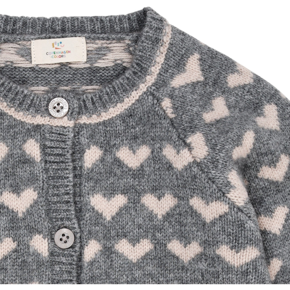COPENHAGEN COLORS Grey Mel/Taupe Combi Cashmere Cardigan W. Hearts