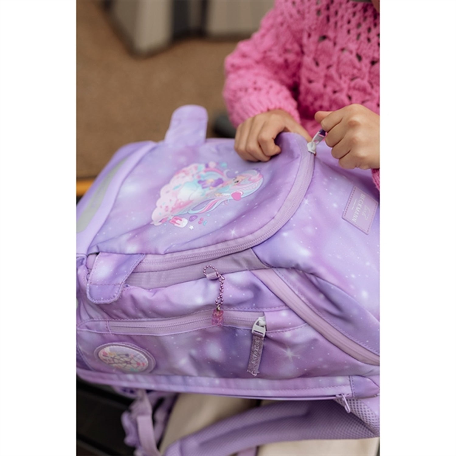 - Practical keychain holder in the front pocket