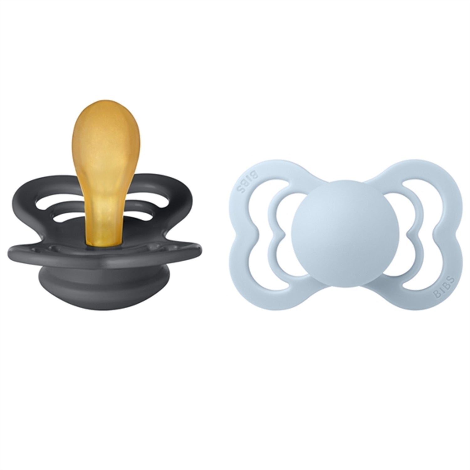 Bibs Supreme Latex Pacifier 2-pack Symmetrical Iron/Baby blue