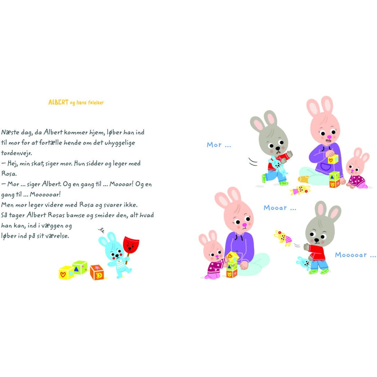 Albert is going to sleep with Max for the first time, and he's excited! But when it comes nap time, he gets a little uneasy... And then it starts thundering too! The next day, he gets angry about something and then happy again. But then there's something he's embarrassed about... It's not that easy at all to keep track of all those emotions...