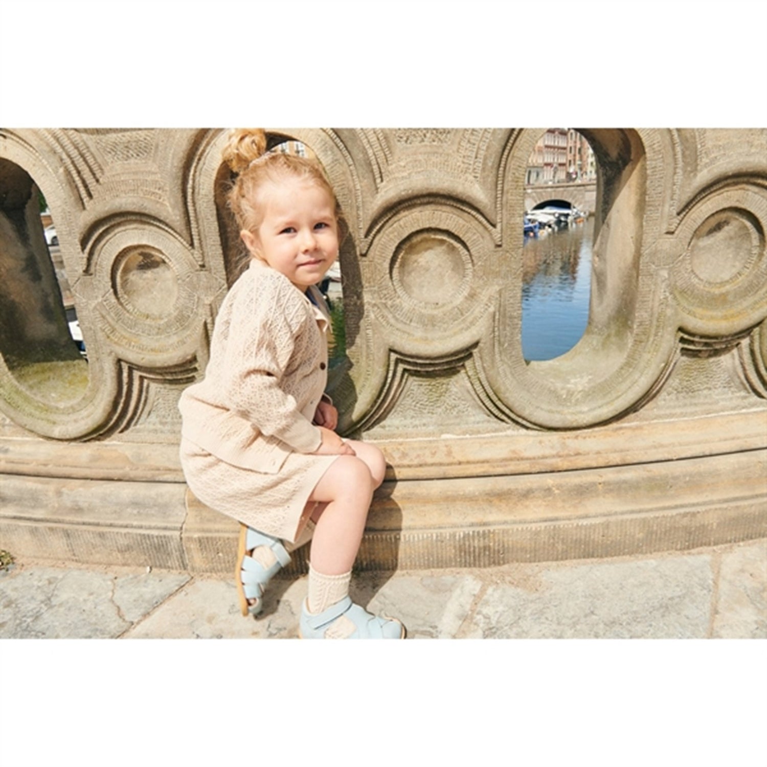 Copenhagen Colors Sand/Cream Comb. Pointelle Cable Knit Cardigan w. Collar