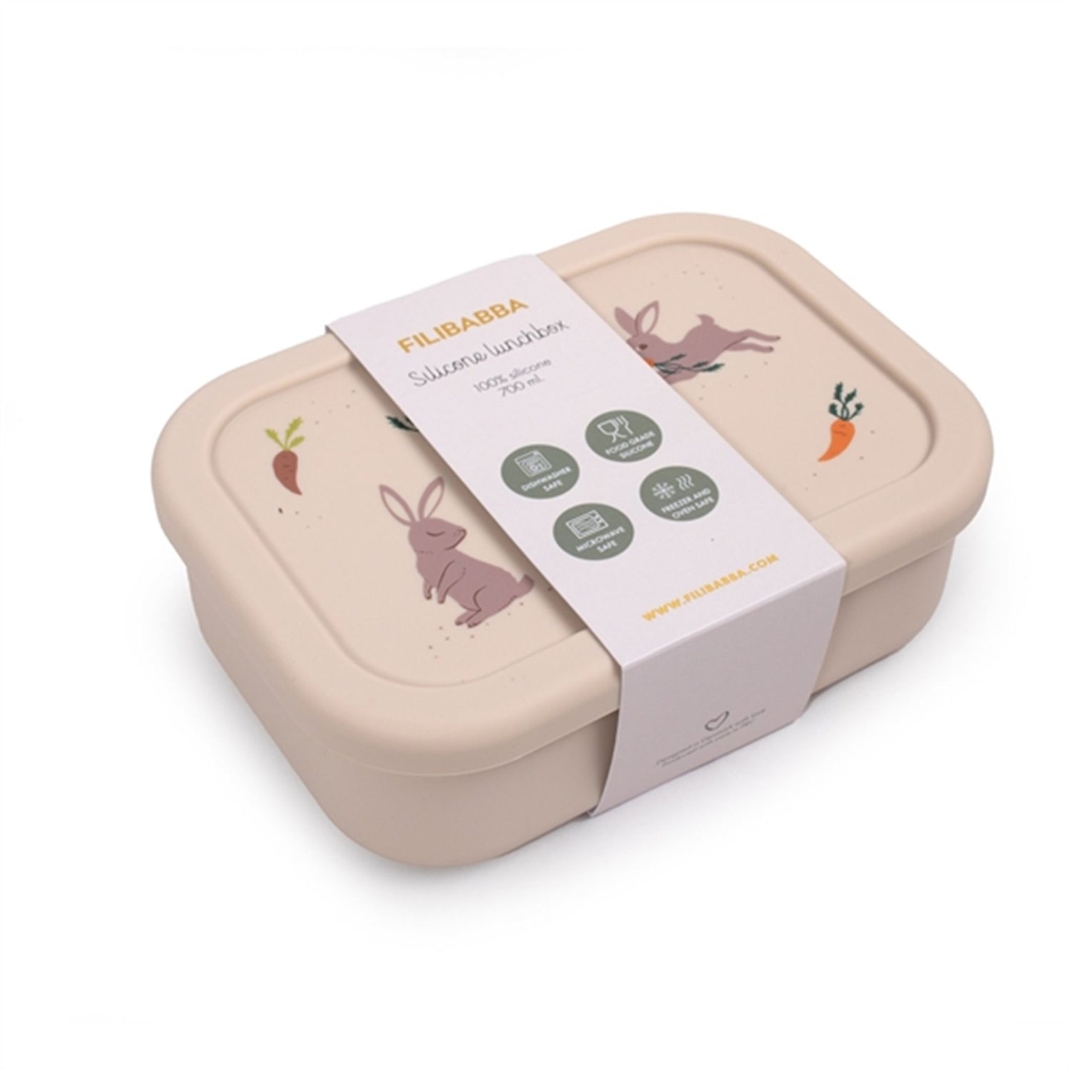 The silicone lunch box is heat resistant and can go in both microwave, oven and freezer and is easily cleaned in the dishwasher.