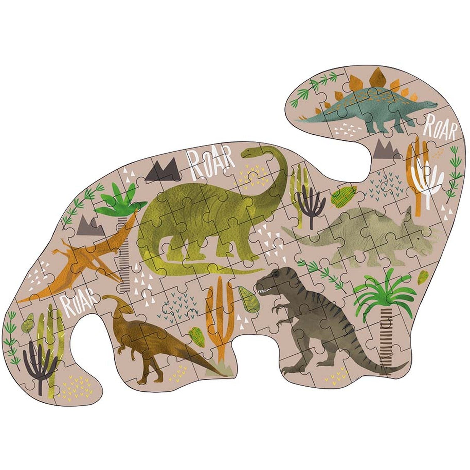 Floss & Rock Puslespil m. formet motiv & æske 80 brikker Dino