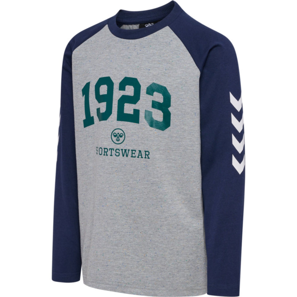 Make sure your little one looks cute and feels comfortable all day long in this hmlNIPPS T-SHIRT L/S from Hummel. Made from soft, organic cotton jersey, this blouse ensures optimal breathability and flexibility. The melange look adds an on-trend twist, while the iconic printed Hummel chevrons and logo on the chest and sleeves add a sporty touch. Perfect for play and relaxation, and with STANDARD 100 by OEKO-TEX® certification, you are also guaranteed that the clothes are free of harmful chemicals.