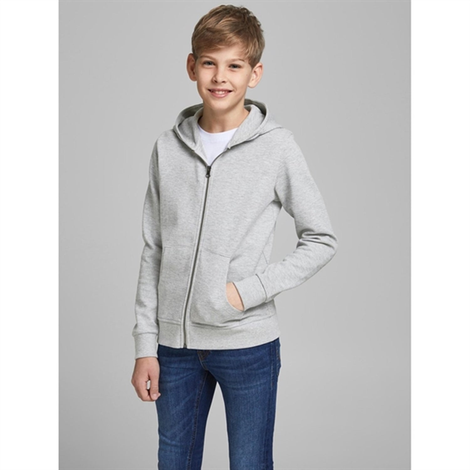 Jack & Jones Junior Light Grey Melange Basic Sweatshirt with Zipper Noos