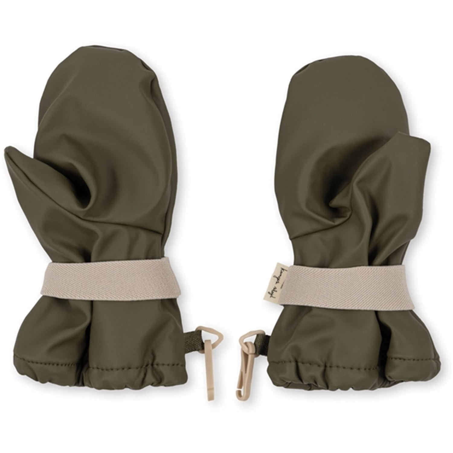 Wind and waterproof PU rain mittens with a warm polyester fleece lining on the inside. The outside is treated with a BIONIC-FINISH ECO layer, which is a highly breathable and water-repellent impregnation. The mittens are designed with a practical thumb piece and an adjustable elastic strap with press studs around the wrist. The practical hooks can be attached to a small loop on a jacket, so that children do not lose them when they are playing or when they are hot. When the mittens are not in use, the hooks can be used to keep them together. A must for the cold and wet months. The PU material is very durable and easy to clean. All seams are taped.- Waterproof 10,000 mm- Taped seams- Wind resistant