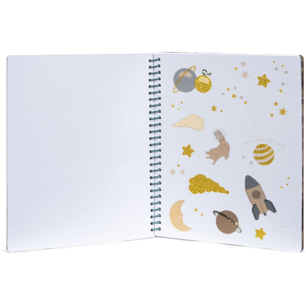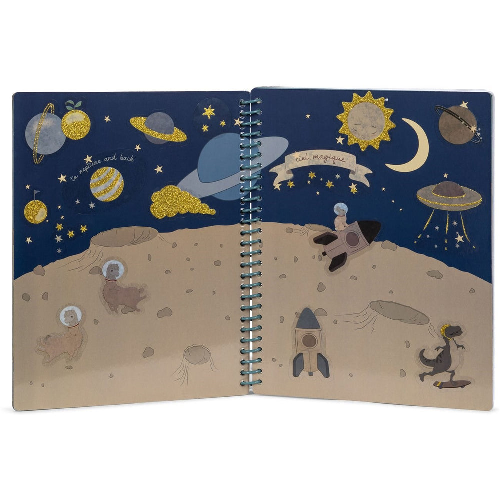 Sticker book with reusable stickers. The set contains 6 pages with stickers and 8 pages with different worlds and universes. Made from papir with a spine of PVC. This product is made of FSC™-papir certified by Control Union.