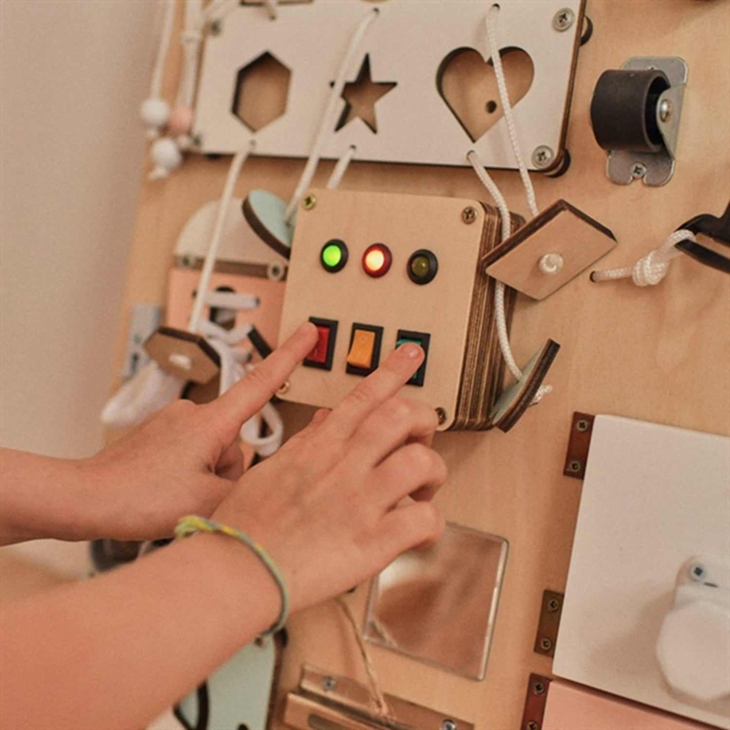 - Panel with LED bulbs that trains logical thinking and motor skills