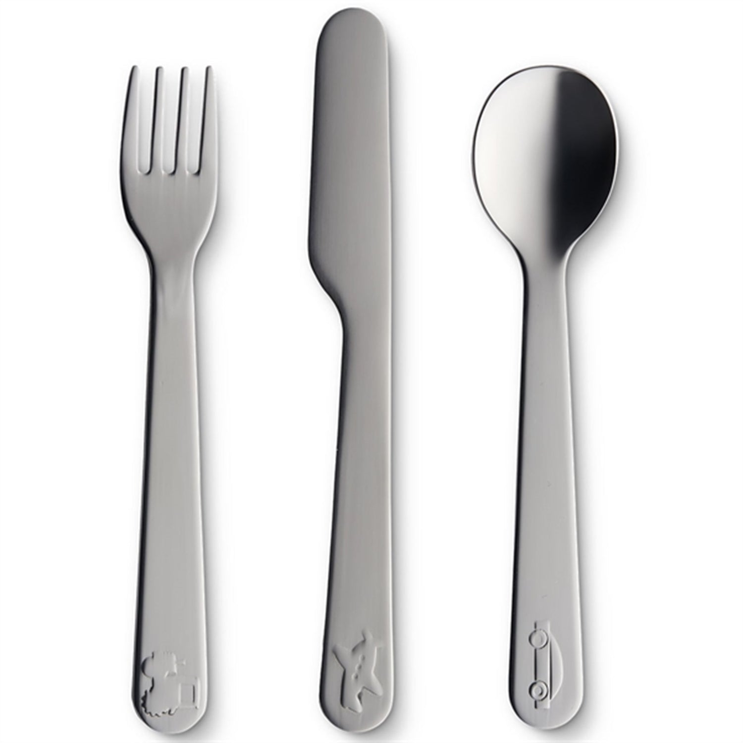 - Stainless steel cutlery set with playful motifs