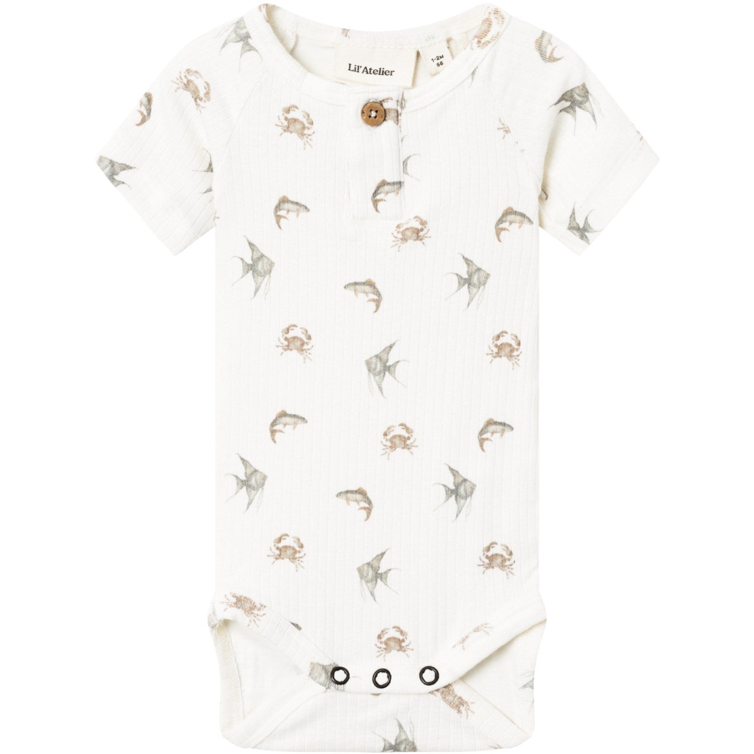 Dress your little one in style with Lil'Atelier Coconut Milk Crab Gio Slim Bodystocking! This adorable bodysuit features a playful print and is made with soft, stretchy fabric for all-day comfort. With a grandad neckline, short sleeves, and button fastening, it's perfect for any occasion. Made with 57% organic cotton, 38% TENCEL™ Lyocell, and 5% elastane, this bodysuit is both eco-friendly and stylish. Create a trendy and cute look for your child with this versatile piece from Luksusbaby's collection.