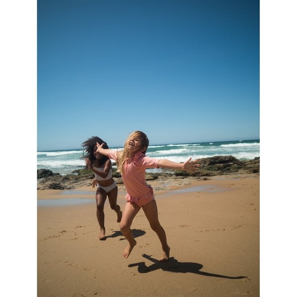 Swim pants with laser cut frills. CE marked and UV protection 40+.