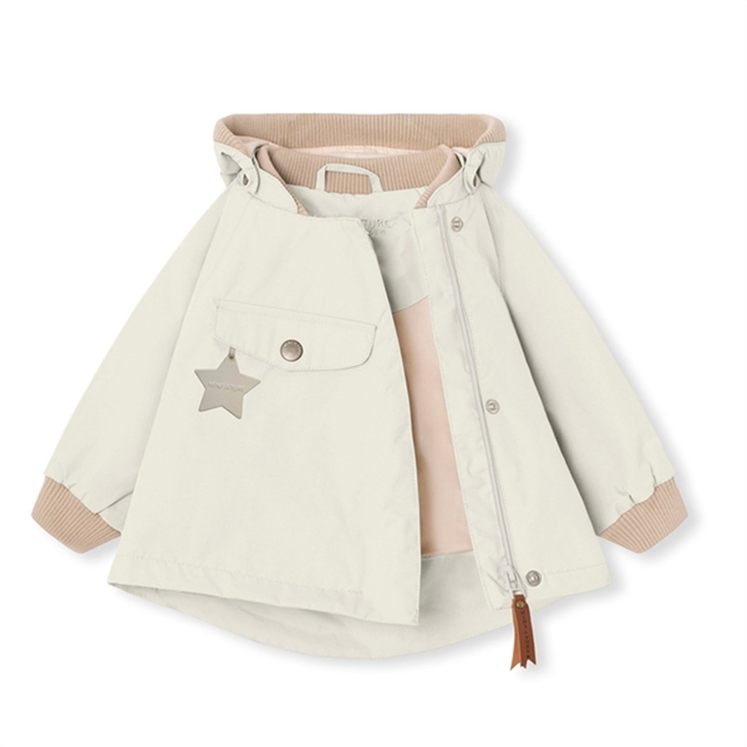The Matwai jacket is MINI A TURE's iconic jacket for the smaller children. The jacket is known for its pointed detachable hood. It has a nice roomy pocket and a slanted front zipper that makes it easy to zip up. The jacket has an adjustable waist so it is easy to adapt to the child. Please note that sizes up to and including size 86cm (18m) have a rib around the neck, while sizes above have a regular collar. Our well-known star reflector can be found in the front pocket as well as a small reflective logo on the back.