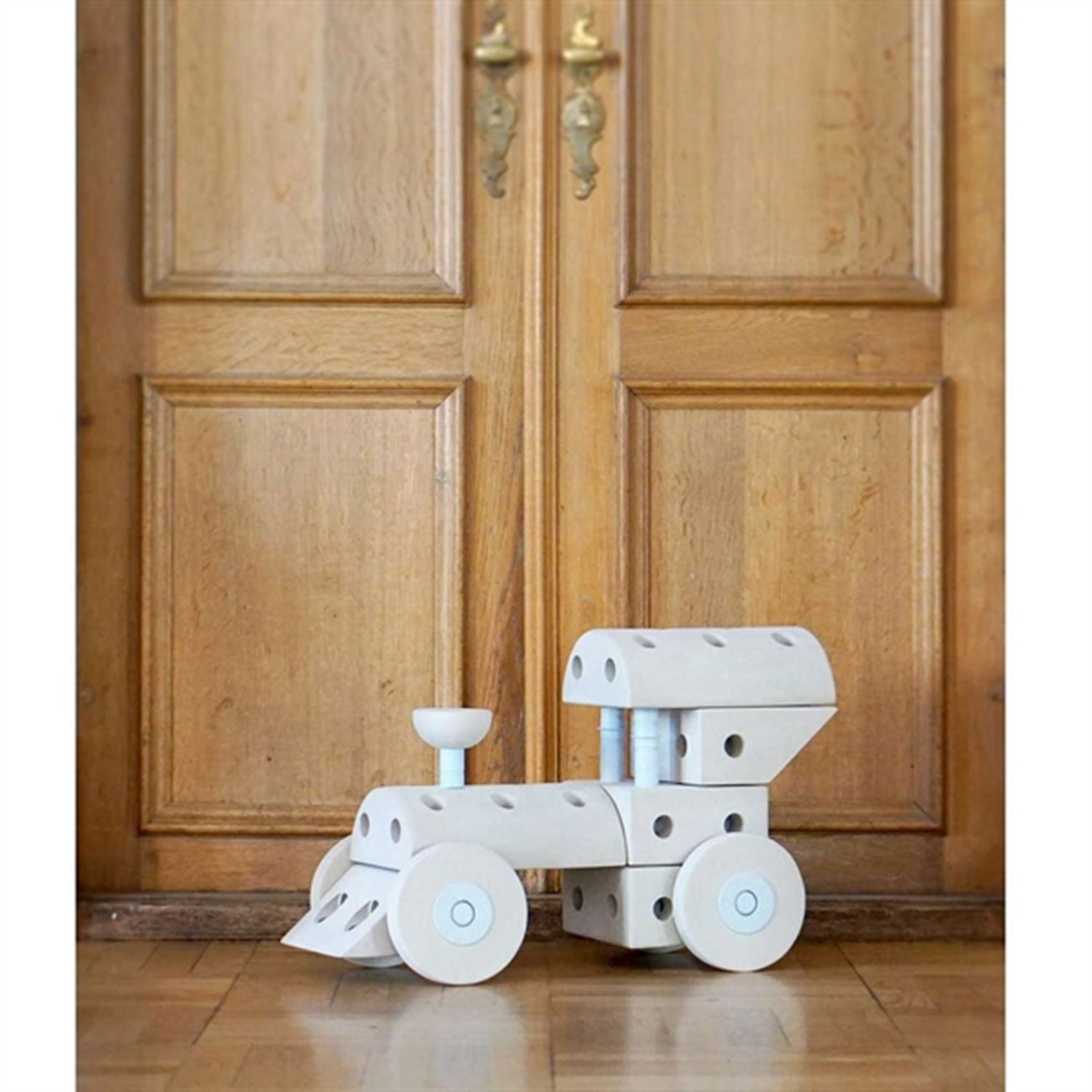 - Set of 7 blocks, 18 sticks, 8 wheels, a bag for sticking and an inspiration leaflet