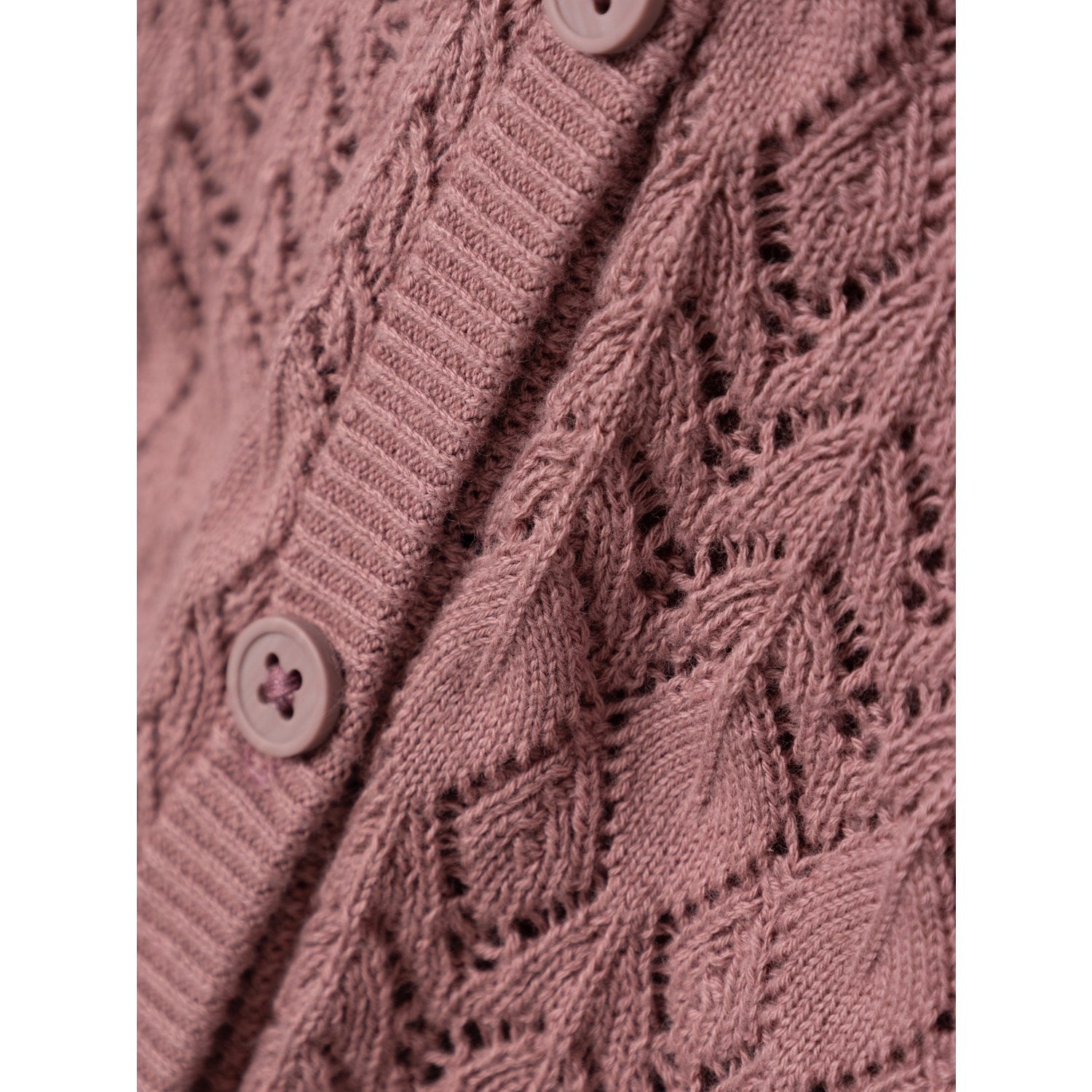 Brighten up your child's outfit with this amazing Name It Nostalgia Rose Hipil knitted cardigan! With its geometric hole patterns and high quality, it is perfect for the spring and summer style. This cardigan has an O-neck, long sleeves, ribbed cuffs and closes with buttons. Made from 100% organic cotton. Upgrade your wardrobe and let your child shine with this beautiful cardigan!
