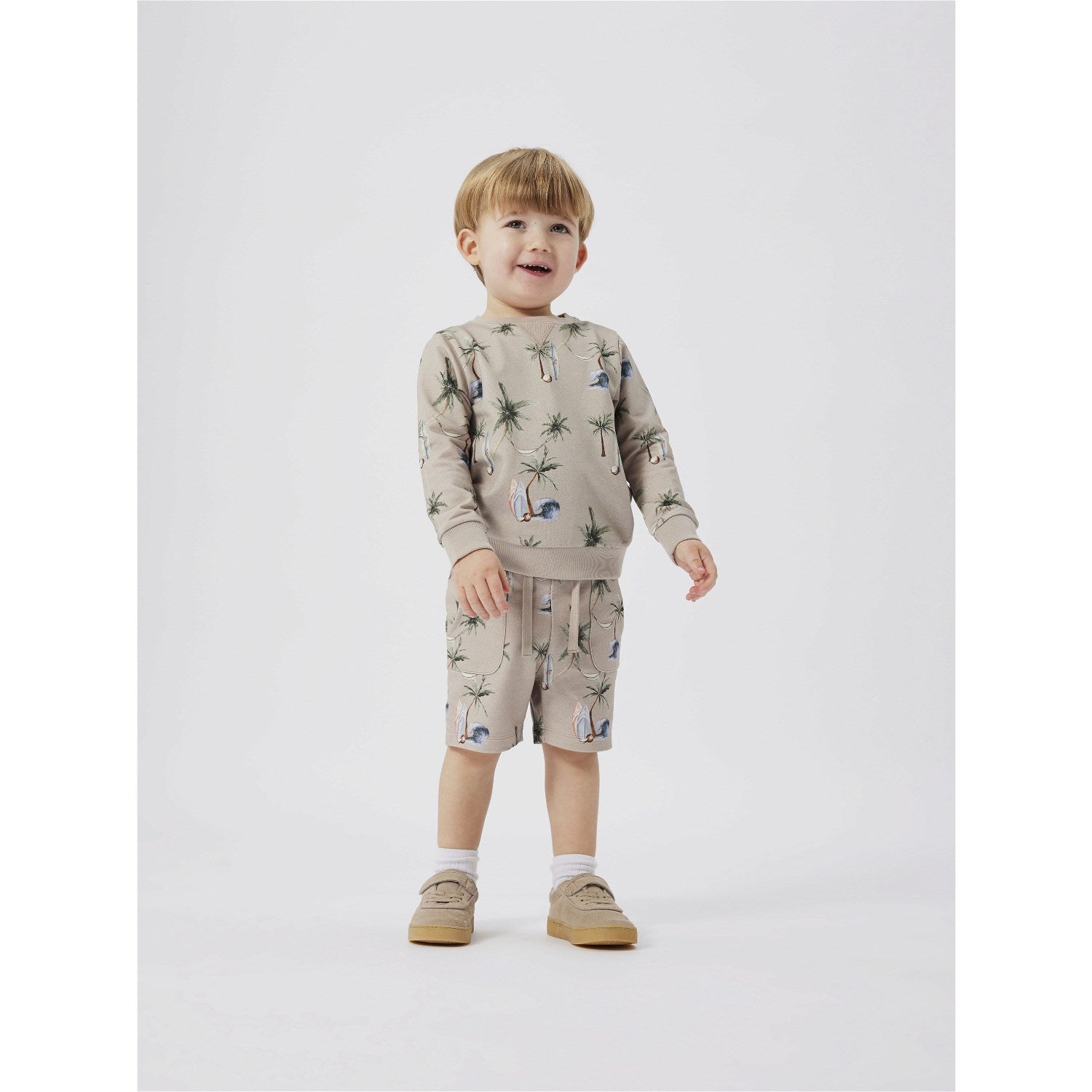 Get your little one ready for summer with the Name It Pure Cashmere Hermod Sweat Long Shorts! Made of unbrushed sweat fabric for a smooth and comfy feel, these jogger shorts feature a fun print repeated across the entire surface. With front pockets, adjustable waist, and mid waist design, these long shorts are perfect for playtime and adventures. Made from 95% Organic Cotton and 5% Elastane, your child will stay cool and stylish all day long. Mix and match with their favorite top for a complete summer look!