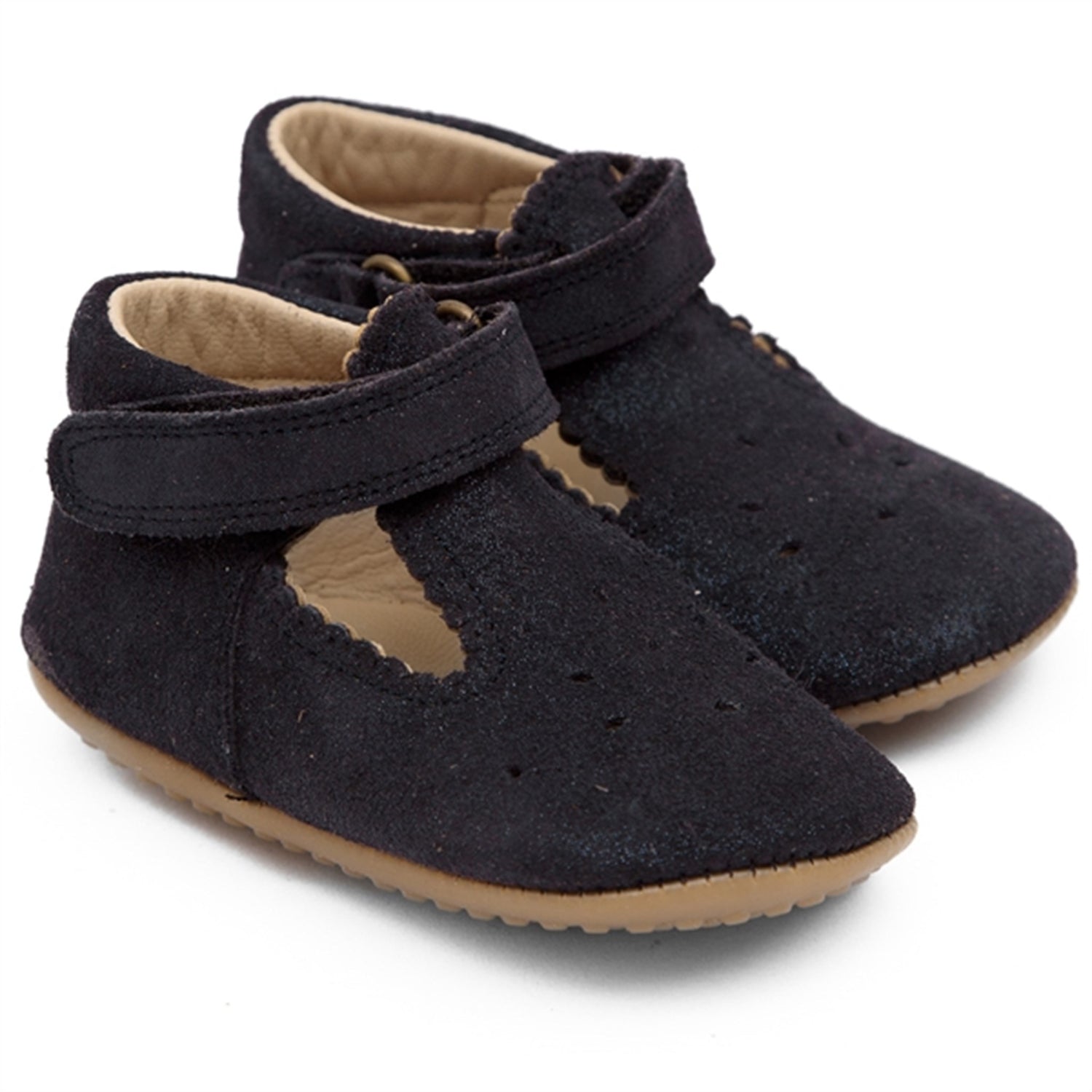 Pom Pom Indoor Shoe Ballerina T-Bar Blue Glitter
