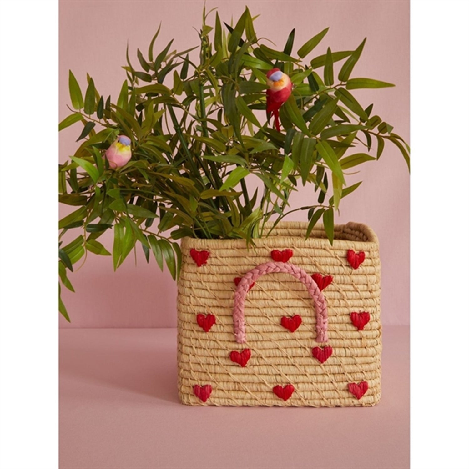 RICE Hearts Square Raffia Basket