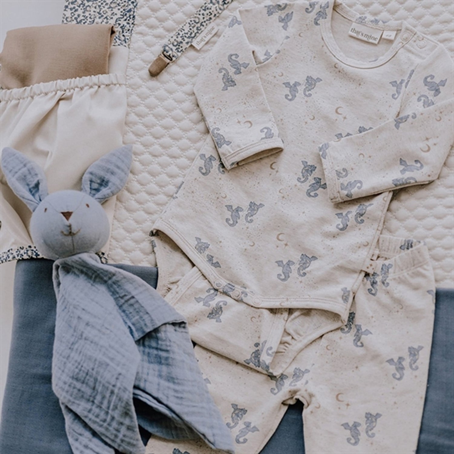 That's Mine Pacifier Straps Ellienes Flores Sandshell/Blue
