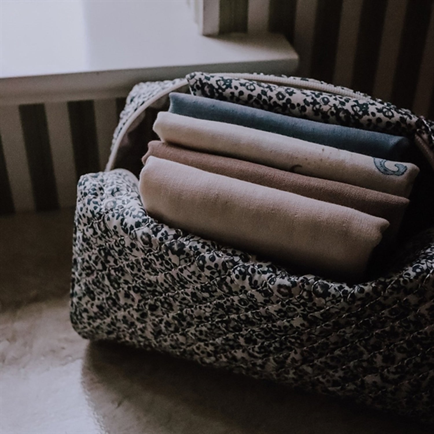 This toilet bag will keep all of your essentials in one place. Perfect for a kids sleepover or to keep the small things gathered together in the nursing bag. The bag has a nice quilted pattern with watting inside. The watting will look out for the products in the bag and keep them safe.