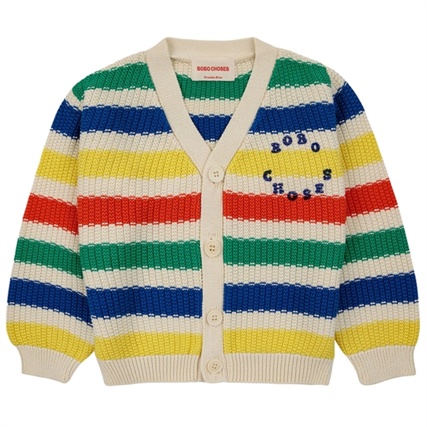 Bobo Choses Multicolor Stripes Cardigan Round Neck Green