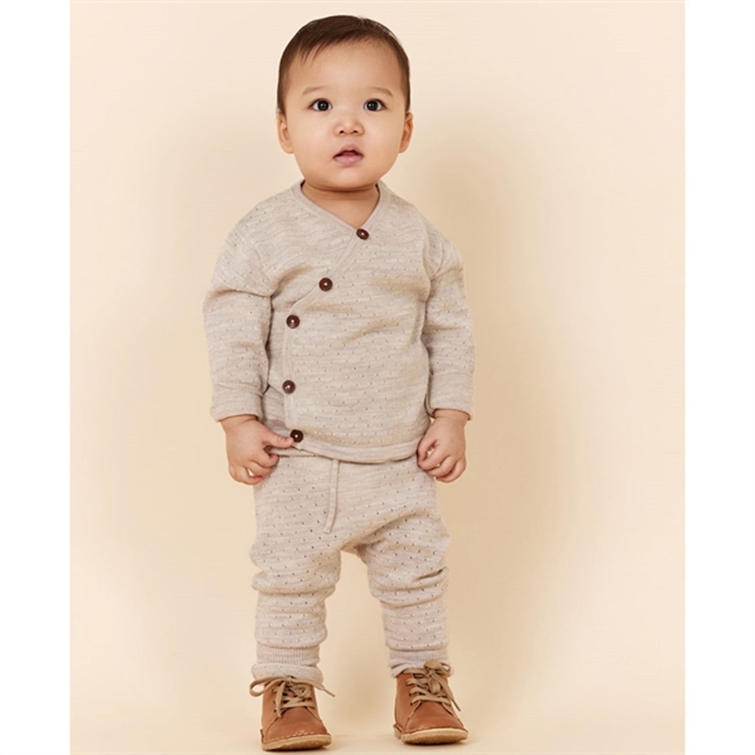 Copenhagen Colors Pale Cream Melange Merino Crossover Cardigan Pointelle