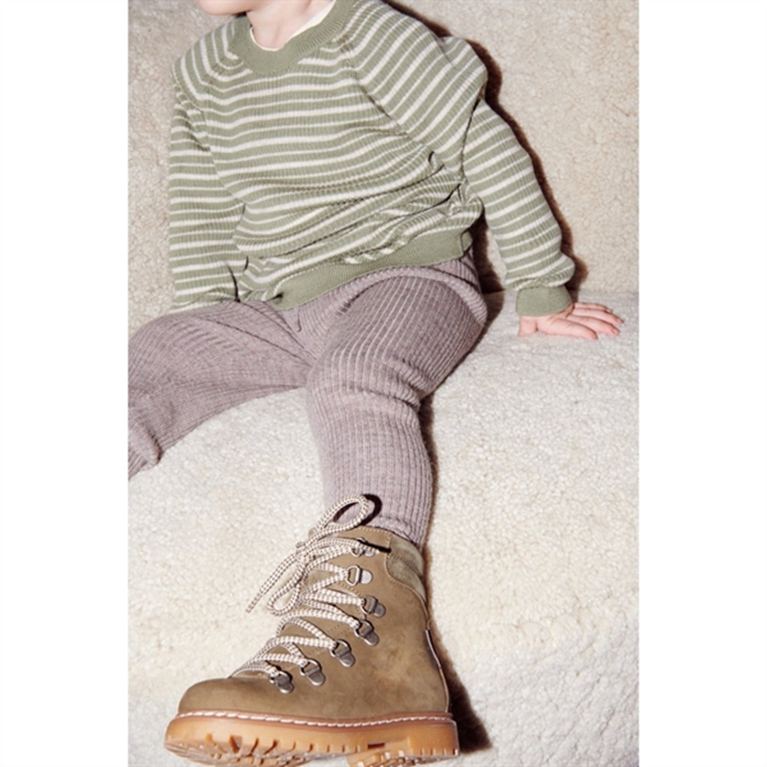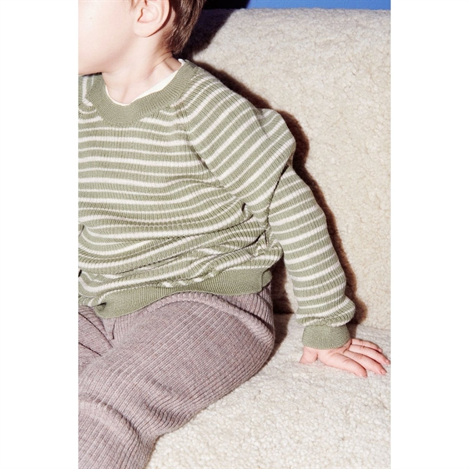 Copenhagen Colors Sage Green/Cream Comb Merino Classic Rib Blouse