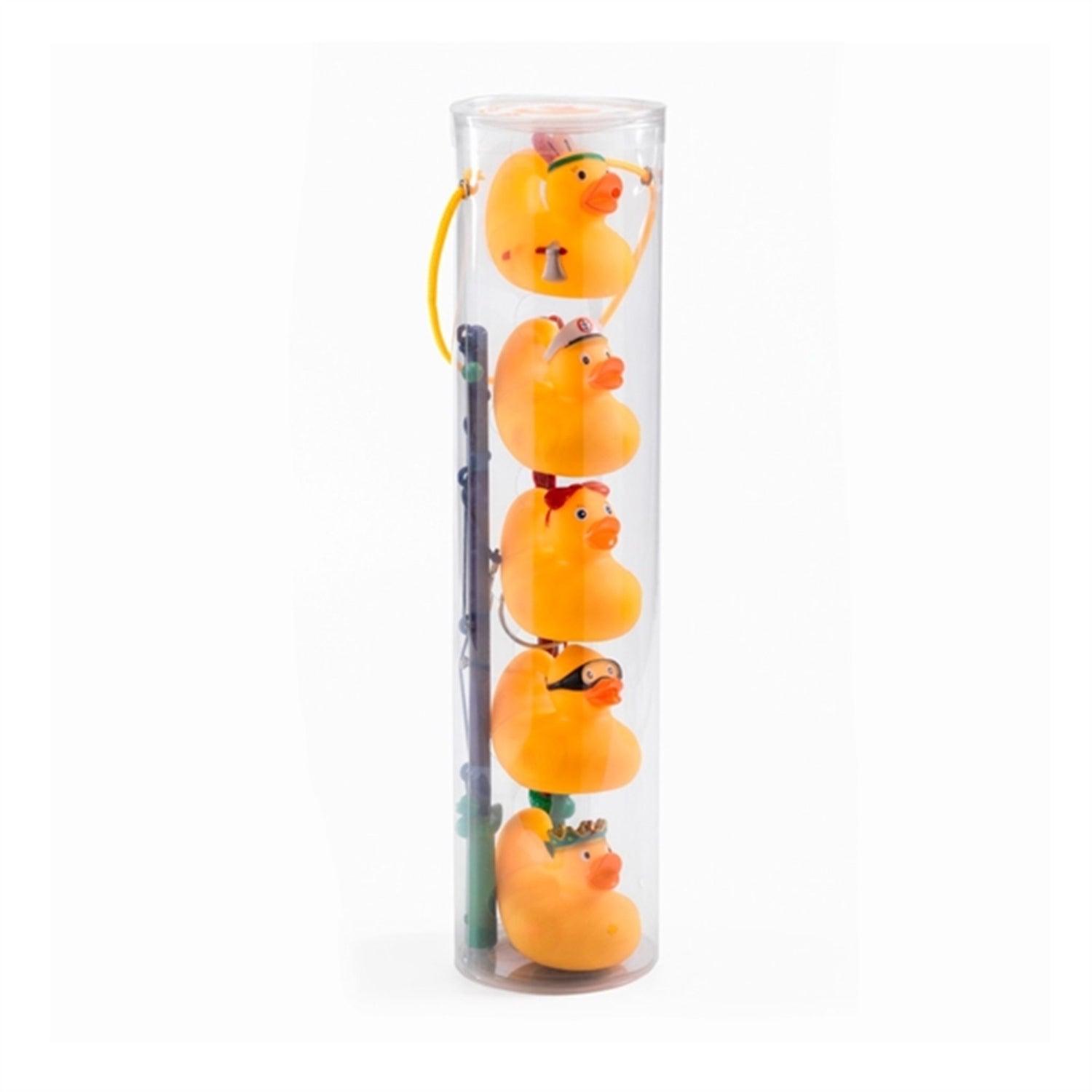 The fishing rod has a hook so that the ducks can be fished up.