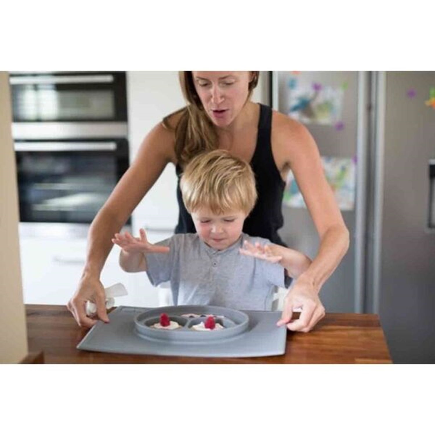 EZPZ Happy Mat Placemat + Plate in One Grey Blue