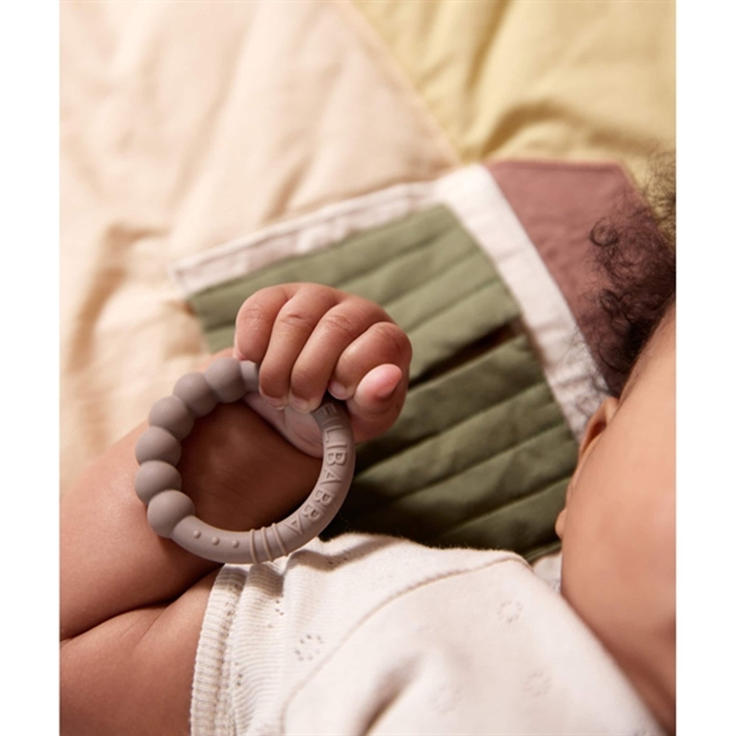 FILIBABBA Teether 2-pack Warm Grey + Oil Green