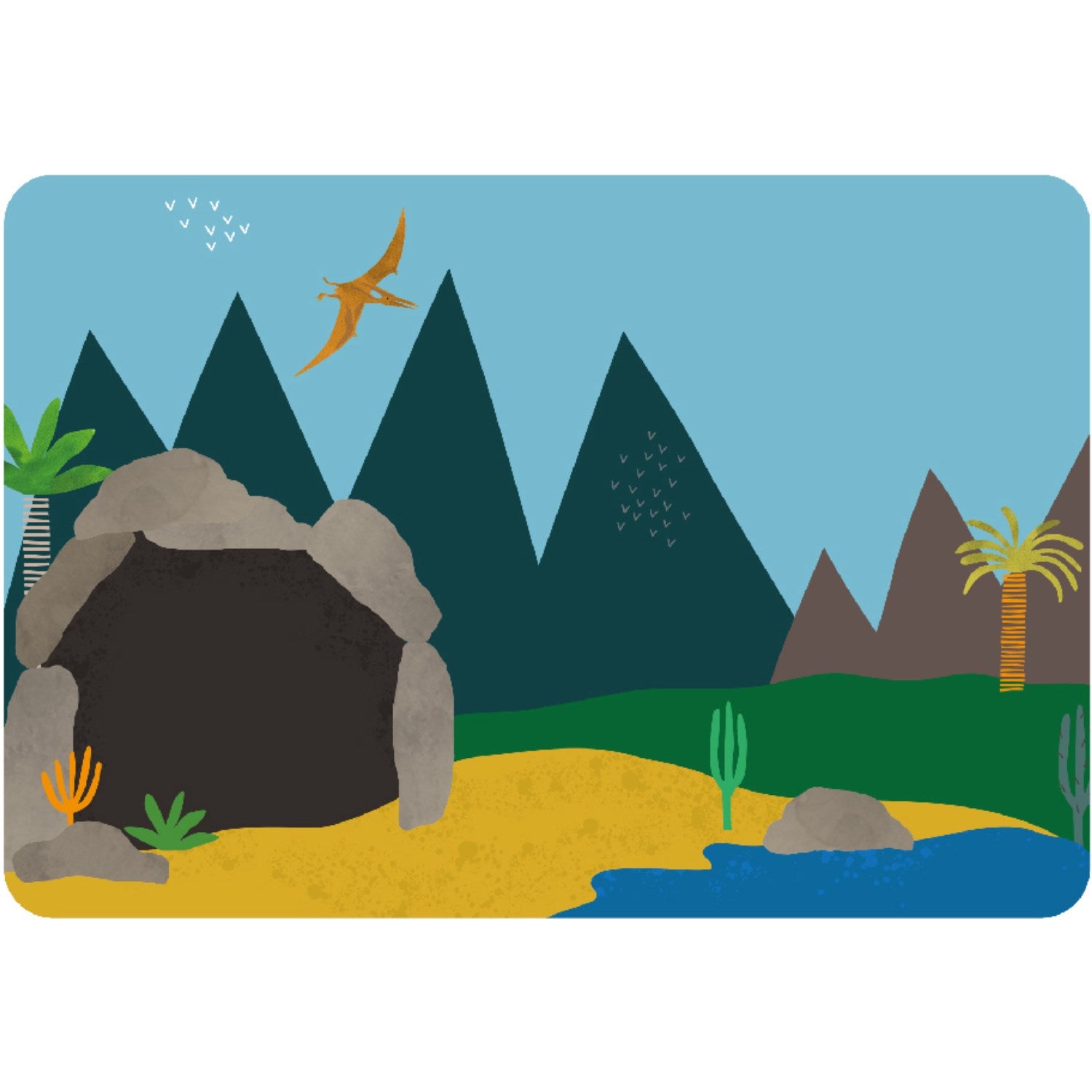 Mess free, magnetic pieces so you don’t loose them. Transportable for travel. Our Dinosaur Magnetic Play Scene features 2 interchangeable backdrops, 50 magnetic pieces including Dinosaurs of all shapes and sizes, caves, cave men and women and so much more. Open the lid and fold open to create an easel, there's a handy drawer to store the spare scene and all of the pieces. This promotes creative learning with endless options.