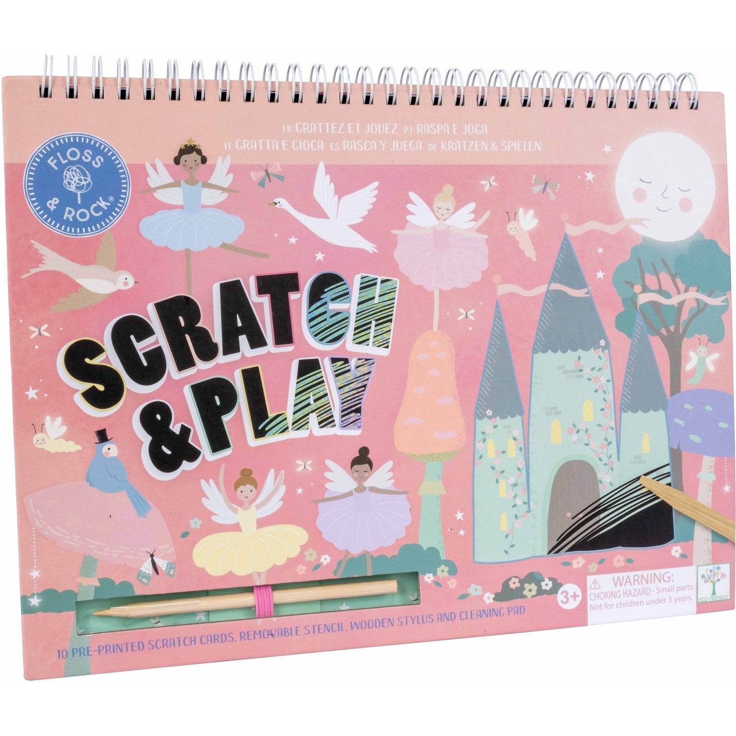 Scratch away and play! Hours of creative fun can be had with our Scratch & Play spiral bound books. Inside you'll find 10 pre-printed scratch cards containing our fabulous Enchanted illustrations - ballet dancers, cute woodland creature friends, tea cups and more. Using the wooden stylus included you can scratch to 'colour in', create new lines or coloured shapes. The stencil card included can be taken out and placed anywhere in the book, meaning you can follow the guidelines to scratch ballerina, bird, swan shapes and more!