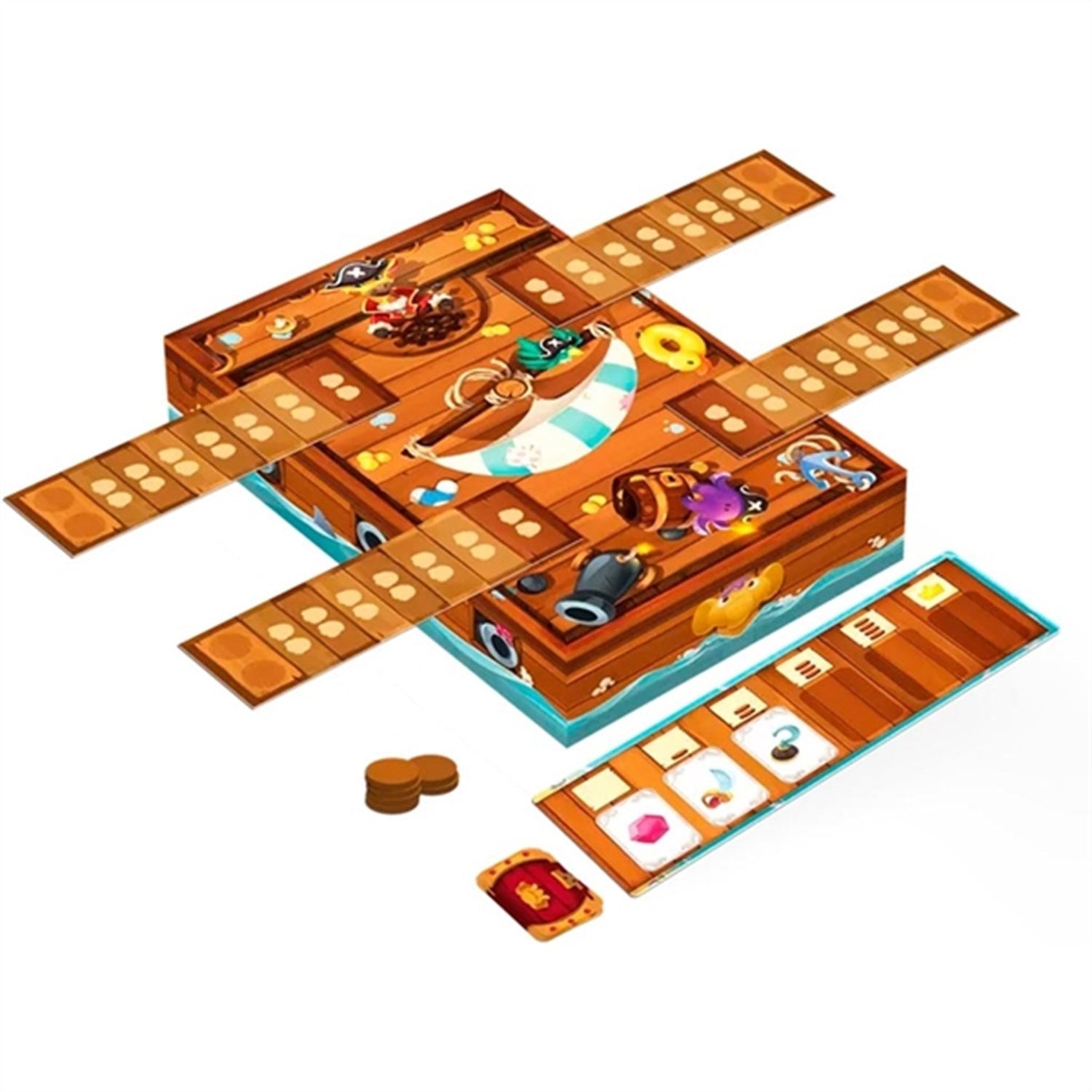 In this game you are pirates trying to control your greed. You take turns drawing valuable treasure cards for as long as you dare to keep going, but be careful! If you draw two of the same cards, you go further on the board!