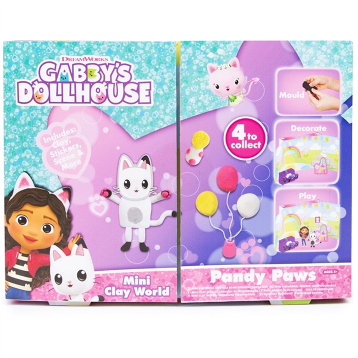 Create your favorite characters with this Gabby's Dollhouse Clay Set - there are 4 different sets in total! Can you collect them all – Muffins, Elfecat, Catfish & Pandy Paw? Shape your figure in the self-hardening clay, decorate and play. The box can even be unfolded to create your very own Gabby world!